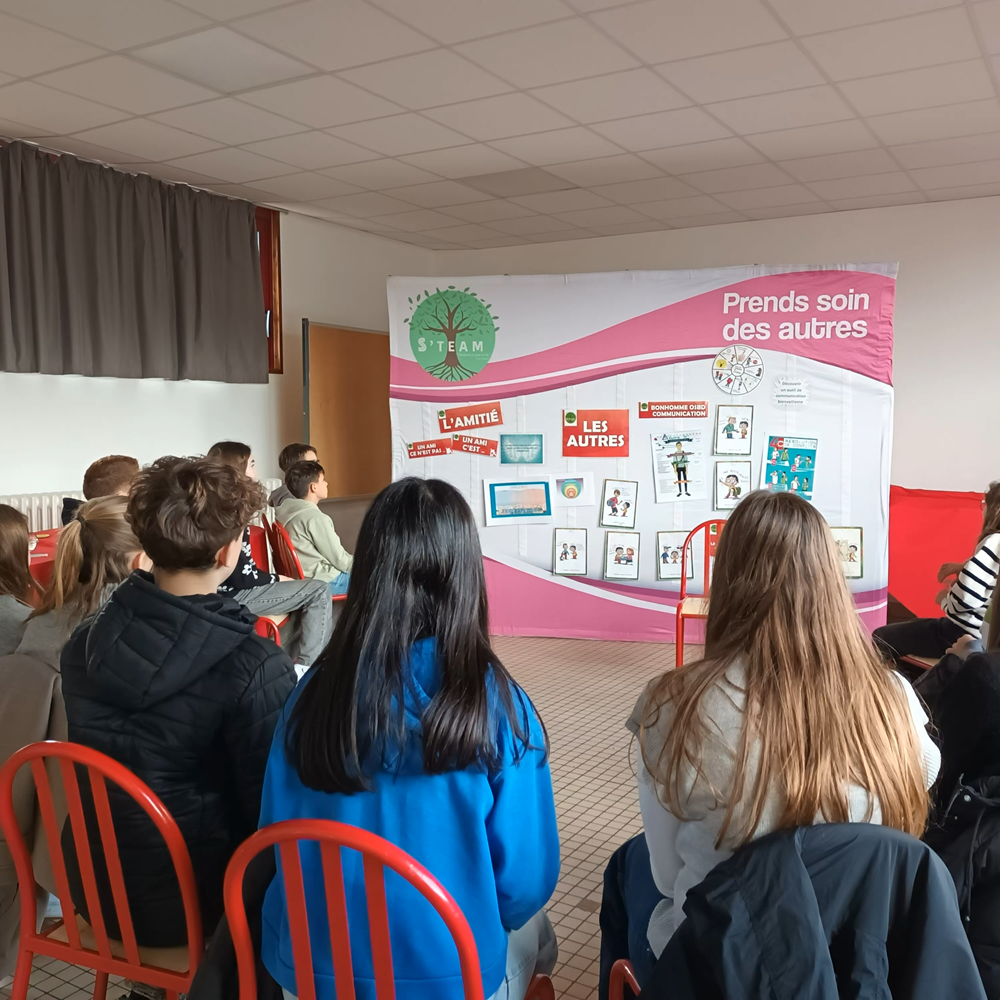 Les élèves de 5ème ont eu ce jeudi et vendredi l'intervention du Forum S'Team de la DDEC 56. Les thèmes abordés sont "la confiance en soi" et le "prends soin des autres". Une intervention qui permet de favoriser un bon climat scolaire, l'estime et la confiance en soi. Les temps d'échange, de partage et de cohésion de classe ont été très appréciés des élèves. Un grand merci aux intervenantes.