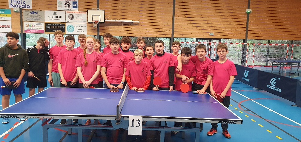 Le championnat départemental de tennis de table par équipe de 3 s'est déroulé à Theix le mercredi 21 janvier. 18 élèves représentaient le collège dans une compétition toujours aussi relevée. Parmi les meilleures performances, le trio de minimes garçons composé de Loann, Gabriel et Martin termine à la 4ème place. Tout près d'une médaille 🏅 🏅 🏅. De beaux espoirs pour l'année prochaine ! Lilwenn, Noan et Lisandro finissent 7ème. Un grand bravo à tous nos participants qui se retrouveront le mercredi 4 février pour l'individuel.