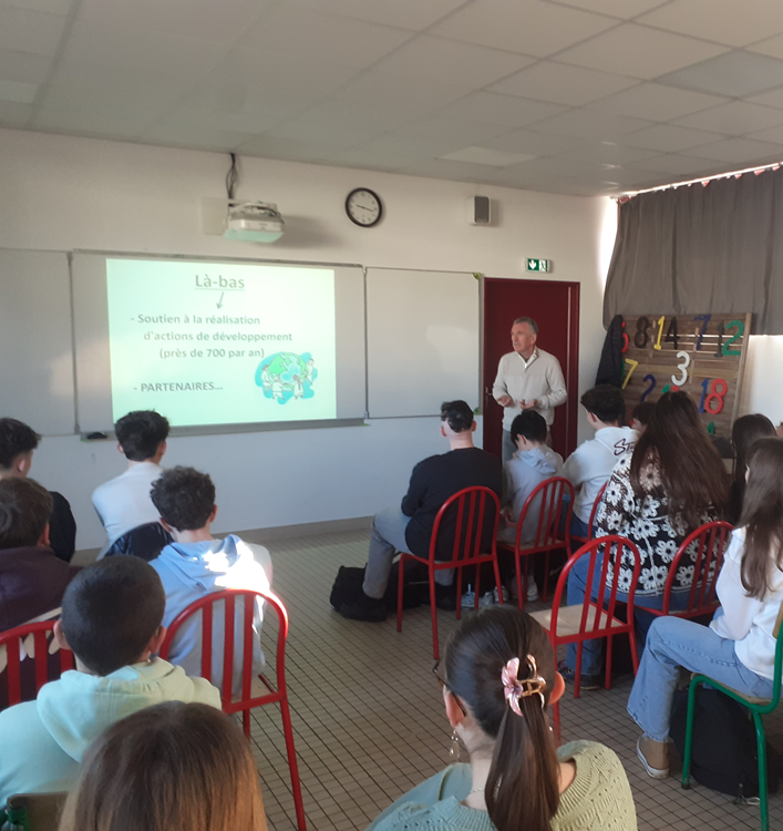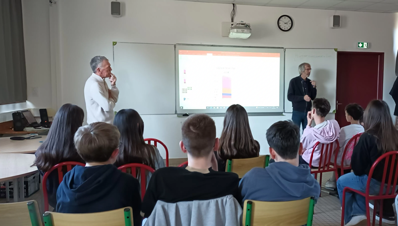 Pierre et Philippe du CCFD Terre solidaire, sont intervenus auprès des élèves de 4ème en cette période de carême, en amont du repas solidaire qui aura lieu le jeudi 2 avril. Le thème de l'intervention était autour de l'hyper-consommation et ses impacts sociétaux, environnementaux, humains. Pour être plus concrets, ils ont pris l'exemple du téléphone portable, sa fabrication : qui ? où ? comment ?