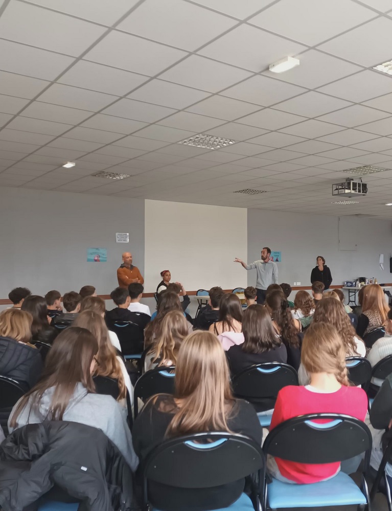 Ce jeudi 9 octobre nos élèves de 4ème se sont rendus à Ploërmel pour un forum "Santé vous bien". Animé par de nombreux professionnels nos élèves ont participé à un théâtre forum sur le thème des addictions aux écrans. Ils ont eu également le choix entre des causeries ou des ateliers. Plusieurs thèmes abordés : le sommeil, mes amis, les réseaux, mes soirées, mon corps, la famille, la sophrologie... un temps précieux pour nos élèves sur des sujets qui les rejoignent.